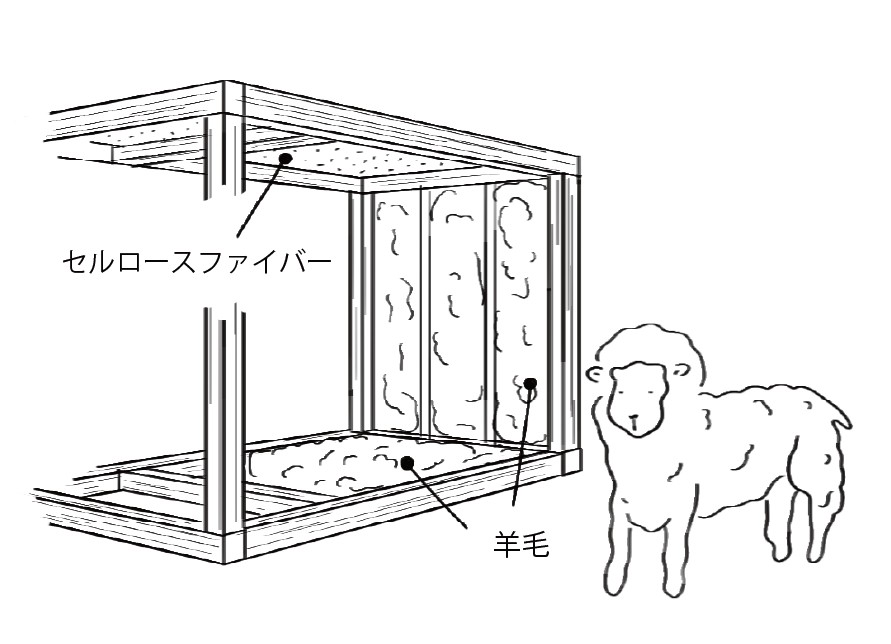 若松中村建築では断熱材に「羊毛」と「セルロースファイバー」を採用しています。